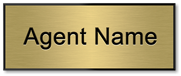 Brass name plates are 4" wide x 1.5" high printed with one line of personalization on metallic brass tone plastic with black lettering and edges.