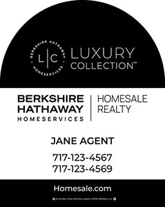 30"x24" Black & White Berkshire Hathaway Homesale Realty DOME panels are printed identically on both sides  according to Berkshire Hathaway Homesale guidelines.   No customization available on this design signs.  Available on 6mm coroplast or 3mm aluminum material.