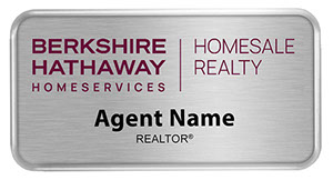 Name Badges are 3" wide x 1.5" high printed with up to two lines of personalization on metallic silver tone insert with silver frame and magnetic back.